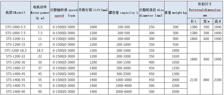 分散機(jī)采用無(wú)級(jí)調(diào)速,有電磁調(diào)速、變頻調(diào)速(如用于水性涂料)及防爆變頻調(diào)速(如用于油性涂料)等多種形式。無(wú)級(jí)調(diào)速功能能充分滿足各工藝過程中不同的工藝要求,可以根據(jù)不同的工藝階段選擇不同的轉(zhuǎn)速。升降形式:有液壓升降;氣動(dòng)升降。本分散機(jī)對(duì)粉體不加助劑、對(duì)晶包完整性要求較高的物料不適用。